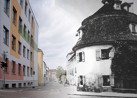 Das Pressebild zeigt übrigends den bahnhofsseitigen Eingang zur Bischof-Meiser-Straße früher "Jägergasse" mit einem Turmbau - etwa um das Jahr 1920.
