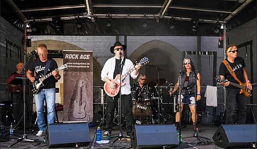 Rock Age wurde 2020 von vier erfahrenen Musikern gegründet, die ihre Begeisterung für die Rockgrößen der 70er und 80er verbindet. Stücke von Deep Purple, der Manfred Mann’s Earth Band, Gary Moore, ZZ Top oder Journey werden von der Band mit Energie und Respekt vor dem Original neu belebt. Zur aktuellen Besetzung gehören Stefan „Barny“ Barnert (Gitarre), Rick Hartinger (Bass), Jürgen Olomski (Keyboard), Kurt Steidl (Schlagzeug) sowie die beiden seit 2025 neu hinzugekommenen Stimmen Tom Leitz (Lead-/Backing Vocals, Gitarre) und Biggi Hofmann (Lead-/Backing Vocals). Mit der erweiterten Front und der zweiten Gitarre gewinnen viele Songs an Tiefe und Druck.