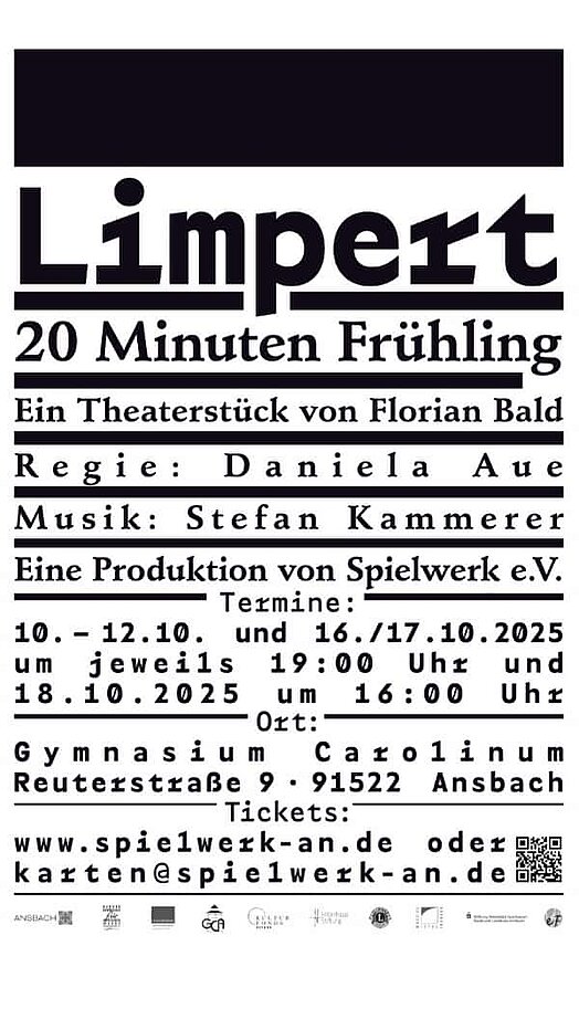 Das Stück erzählt die Geschichte von Robert Limpert, der 1945 in Ansbach hingerichtet wurde – exemplarisch für das Spannungsfeld zwischen Zivilcourage und Unterdrückung. Florian Bald hat ein vielschichtiges Werk geschaffen, das dokumentarische Elemente mit choreografischen Sequenzen verbindet und das Publikum durch Limperts ehemalige Schulräume führt. „LIMPERT. 20 Minuten Frühling“ ist kein klassisches Geschichtstheater, sondern stellt die Frage, wie wir heute leben wollen – über Verantwortung des Einzelnen und die Fragilität der Menschlichkeit. Limperts Mut, sein Scheitern und sein Tod werden nicht verklärt, sondern widersprüchlich erzählt. Gerade dadurch gibt es keine einfachen Antworten, aber die richtigen Fragen.